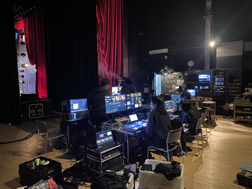 オペラを上演できる会場ですので、舞台後方も舞台袖も非常に広く、大型LEDビジョンを立て込んでも映像オペレーション部隊は余裕を持ってライブ運用を行うことができました。